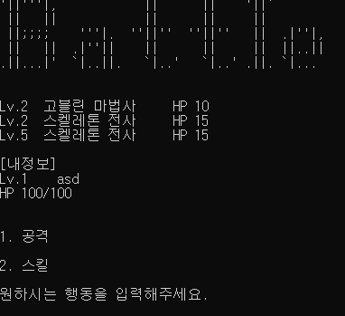 그 후 Monster 클래스에서 만들어 둔 ShowText 메서드를 이용해 몬스터들의 정보를 콘솔창에 출력 해주도록 하자.