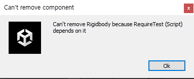 그리고 RequireComponent 어트리뷰트 대상인 컴포넌트는 제거가 불가능하다.