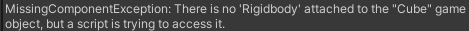 RigidBody를 따로 부착시키지 않았으면 이대로 실행 시 당연하게도 Missing 오류 메시지가 뜬다.