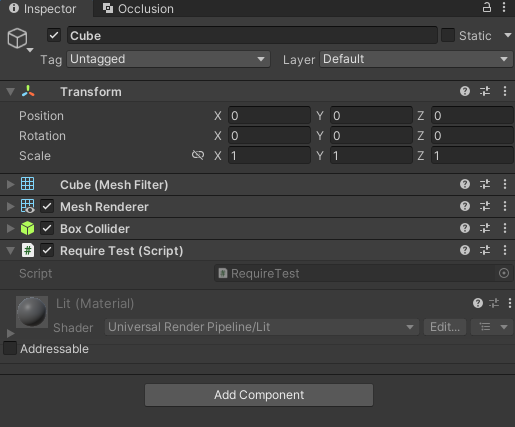해당 컴포넌트를 강제로 사용하기 때문에 따로 인스펙터에서 추가할 필요가 없다.