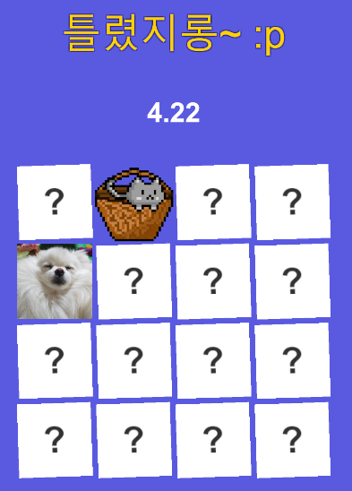1주차에는 미니 프로젝트로 사전캠프 4주차 강의에서 배웠던 르탄이 카드 뒤집기 게임에서 조금 더 살을 붙여나가는 작업을 협업으로 하는것이다.