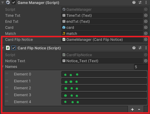 이후 CardFlipNotice 클래스의 MatchCheck함수에