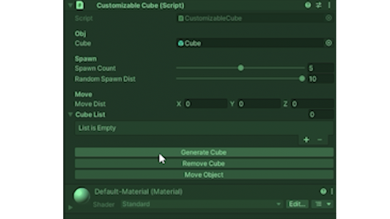 if (GUILayout.Button("Remove Cube"))
