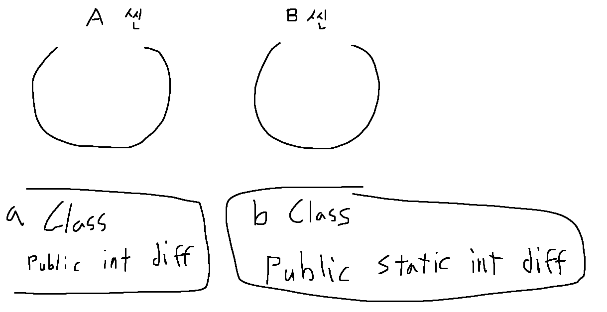 b클래스 내부에 public static int diff