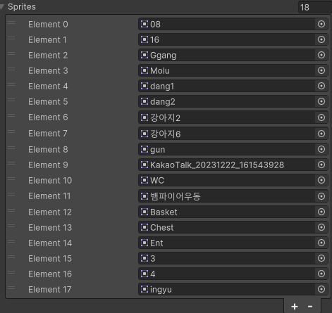 이렇게 18가지의 Sprite 중 랜덤하게 가져올 수 있도록 바꿔주었다.