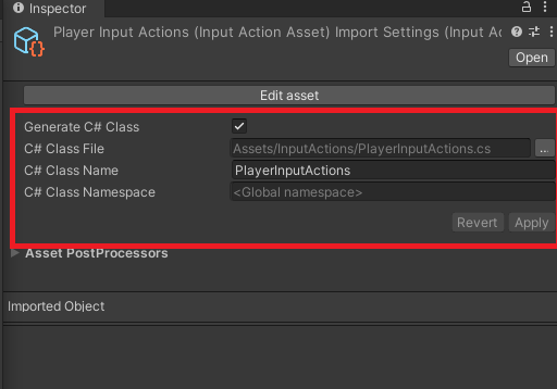 이전에 했던 것들과 똑같지만 하나 다른 게 있다면 우측 인스펙터 창에서 C# Class File을 Generate 해야 한다는 것이다.