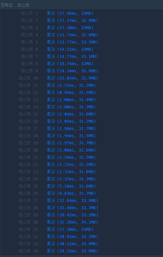 다른 분들의 풀이를 적용해서 비교했을 때 시간 차이가 거의 없었다.