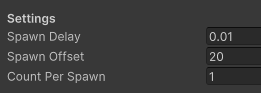 spawnDelay초가 지난 뒤 countPerSpawn 수만큼 spawnOffset 크기의 구 안에 랜덤 생성 후 1초 뒤 파괴한다.